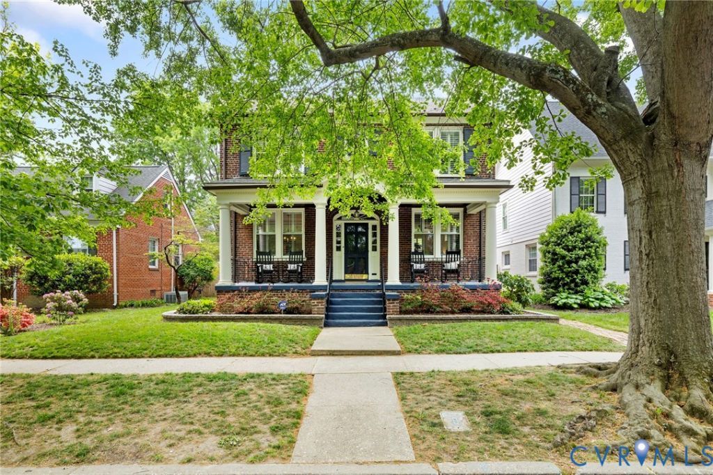 A unique GEM in Malvern Gardens and the popular Mary Munford ES area, this circa 1929 brick and slate home blends classic architectural detail with thoughtful updates and an unbeatable location. A standout feature, the deep, full-width columned Front Porch with a central arch and barrel-vaulted entry offer the perfect place to relax and enjoy the vibrant surroundings! Pop around the corner to coffee at Stella's Grocery, or enjoy a mid-day or evening meal at Stella's Restaurant or at Lafayette Tavern- whatever suits your mood and lifestyle. Inside the home, a gracious Center Hall opens to beautifully proportioned rooms with 9.5-foot ceilings, crown moulding, and rich period millwork. Newly refinished hardwood floors and a freshly painted palette enhance the home's light-filled spaces. The spacious Living Room features built-ins and a fireplace with decorative brick surround with dentil edged mantel, while the Dining Room showcases an original diamond-pane window. The Kitchen offers timeless appeal with wood cabinetry, eco-friendly PaperStone counters, stainless appliances, and a breakfast peninsula. Upstairs, the Primary Suite includes a renovated black-and-white tile EnSuite Bath and connects to a flexible fourth Bedroom-ideal as an office, dressing room, or expanded closet. Two additional generous Bedrooms and an updated Full Bath complete the level. Enjoy outdoor living on the rear deck overlooking a fenced yard with curated perennial gardens. A RARE detached two-car Garage adds dedicated parking and storage. Full unfinished Basement (approx. 849 SF) offers exceptional potential, Workshop space and even more storage along with the spacious pull-down floored Attic with stand-up ceiling height. A truly special HOME combining historic charm, modern comfort, and a Uniquely-Richmond location!